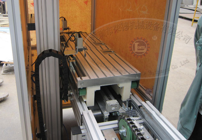 高鐵門自動裝配流水線技術優(yōu)勢:針對高鐵門驅(qū)動部分,尺寸長短不一且很沉重,不好定位,設計一套能自動流動工裝小車,小車采用一組帶手動離合驅(qū)動小車,一組被動小車,且產(chǎn)品放到主驅(qū)動小車,通過一個升降壓板壓緊產(chǎn)品的底板(可適應2-6mm的底板),另一組被動小車依產(chǎn)品長度調(diào)到合適位置,由升降壓板壓緊定位好進行產(chǎn)品組裝,組裝一部分后,由輸送帶送至下一站,進行下一道工藝組裝,一共進行9道工序組裝后,產(chǎn)品取下,工裝小車由提升機送至下層返回輸送帶,從另一頭起點提升循環(huán)使用。