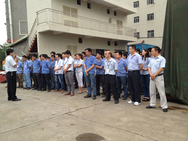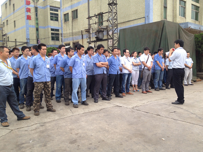 2014年4月26日17點(diǎn)整,消防警鈴響起,義務(wù)消防隊(duì)疏散組成員在第一時(shí)間分別趕到公司辦公樓各樓層以及宿舍內(nèi),在他們的喊話提醒下將所有員工于120秒內(nèi)有序地疏散到廠外的安全區(qū)域,在整個(gè)過程中,秩序井然、無人員受傷和擁擠踩踏的情況。要知道此次逃生演習(xí)的過程員工是不知情的,僅疏散組成員提前開會(huì)討論過。逃生演習(xí)拉開了此次消防演習(xí)的序幕。