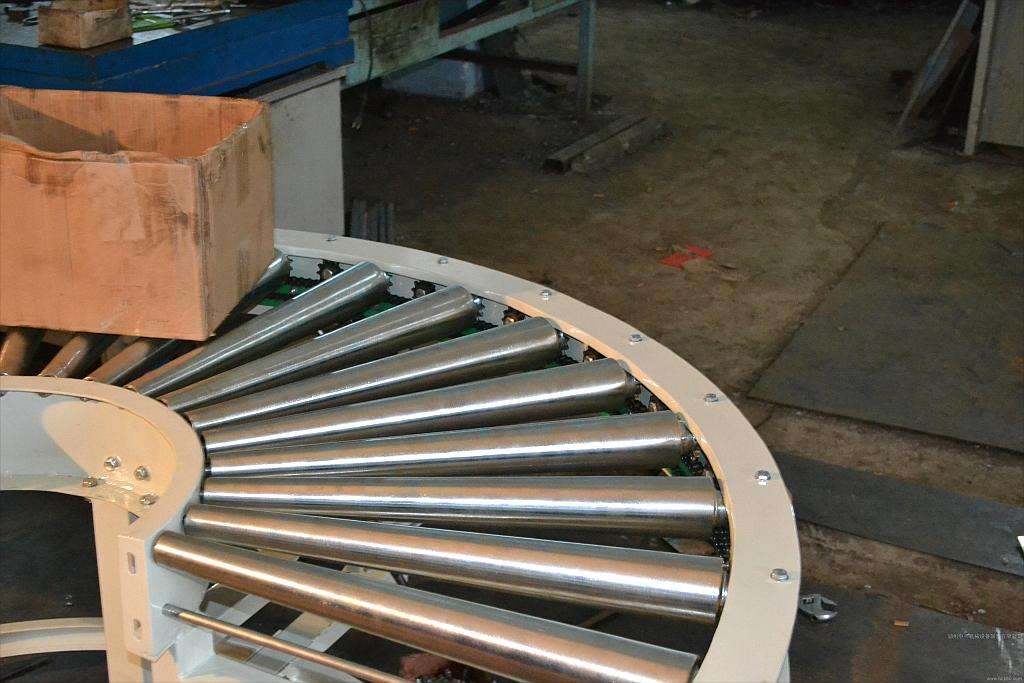 噴涂生產(chǎn)線單層包塑棍子積方式托盤輸送線體,由兩個減速電機驅(qū)動,摩擦式傳動,共分5個工作區(qū)域,長約二十六米;考慮到輸送品種繁多、剝漆、打磨二個工序,不同的產(chǎn)品工序時間變化較大,為避免工作過程中形成瓶頸工序,特在此2個工序間專設(shè)物料待放區(qū)域,以確保線體輸送流暢。同時考慮到托盤對產(chǎn)品的兼顧,托盤采用500*1000的規(guī)格,縱向輸送,便于操作。