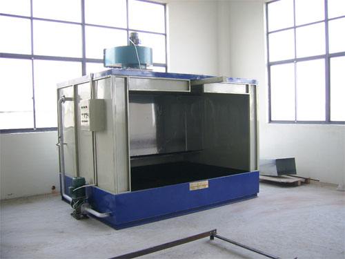 干式噴漆室有室體、排風(fēng)裝置和漆霧鋪集裝置等組成。室體一般是用鋼結(jié)構(gòu)支架,鋼壁板和玻璃墻板組合制成。小型的干式噴漆室可將小型排風(fēng)機(jī)直接放置在噴漆室頂部。大中型的應(yīng)將排風(fēng)機(jī)放置在室外,或室內(nèi)平臺(tái)上。漆霧處理裝置通過減慢流速和增加漆霧與折流板或過濾材料的接觸機(jī)會(huì)來捕集漆霧。