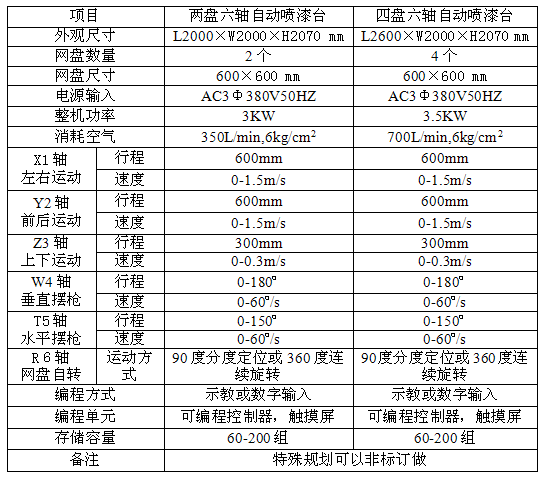六軸自動(dòng)噴漆臺(tái)技術(shù)參數(shù)