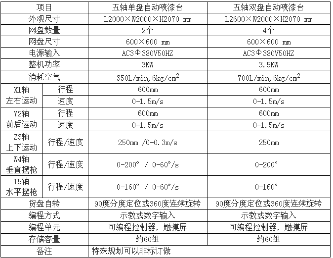 榮德五軸自動(dòng)噴涂機(jī)技術(shù)參數(shù)