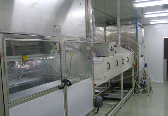 噴漆烘干流水線技術(shù)優(yōu)勢:該裝置反射鏡采用聚光型冷鏡,燈下加裝石英玻璃板,可有效降低被照物表面溫度;變頻無級調(diào)速,保證傳送平穩(wěn);觸摸屏微電腦自動控制,實(shí)現(xiàn)人機(jī)對話;每套UV系統(tǒng)獨(dú)立控制,依生產(chǎn)開啟燈管數(shù)量;每支燈設(shè)累計(jì)工作計(jì)時(shí)器,方便掌握燈管工作時(shí)間和老化程度;透明視窗,工作時(shí)可以觀察固化燈工作情況,并設(shè)開門保護(hù)裝置;燈管及燈罩可以上下調(diào)整。